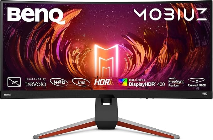 BenQ MOBIUZ EX3415R Monitor Curvo Gaming (34 pollici, IPS, Ultrawide, 2K, 144 Hz, 1ms, HDR 400, FreeSync Premium Pro, telecomando)