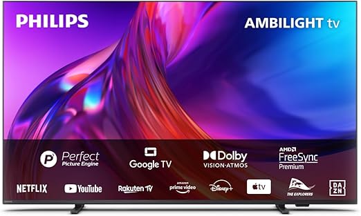 - AMBILIGHT IMMERSIVO: Sperimenta uno straordinario spettacolo di luci con la retroilluminazione Ambilight su 3 lati, la funzione di adattabilità al colore della parete, Ambilight+hue e le modalità Lounge, Gioco, Ambilight Music e AmbiSleep.