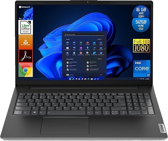 Lenovo Notebook, V15 G4, Display Laptop 15.6" Full HD, CPU Intel Core i7 di 13th Generazione, 16GB Ram DDR4, 512GB SSD NVMe, Windows 11 Pro, Libre Office, Portatile Pronto All'Uso