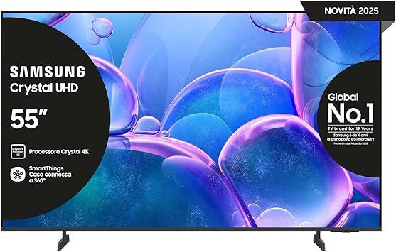 - Smart tv 55 pollici, Processore Crystal 4K che trasforma tutto ciò che guardi nella straordinaria definizione 4K, Tecnologia PurColor per una resa cromatica precisa con una vasta gamma di colori, Design elegante e raffinato senza cornice su 3 lati