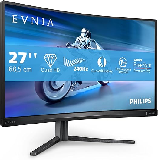 PHILIPS Evnia 27M2C5500W - Monitor da gioco curvo QHD da 27 pollici, 240 Hz, HDR400, 1 ms GtG, FreeSync Premium Pro (2560x1440, HDMI, DisplayPort, USB Hub) grigio scuro