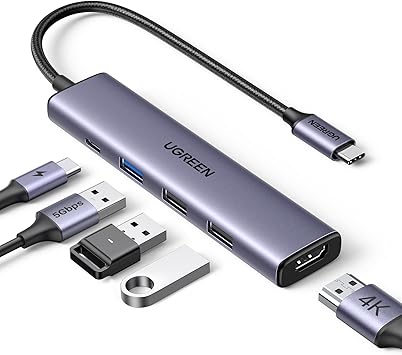 - [ Aggiungi Altre Porte ] Con una porta HDMI 4K, una porta di ricarica USB C PD 100W, una porta USB 3.0 e 2 porte USB 2.0, questo hub USB C 5 in 1 aggiunge porte al vostro dispositivo per liberarvi dalla fame di porte. Consiglio: l'uscita HDMI dell'hub HDMI non funziona se la porta USB C del dispositivo non supporta lo streaming video. E si prega di notare che questo hub non ha la scheda SD.